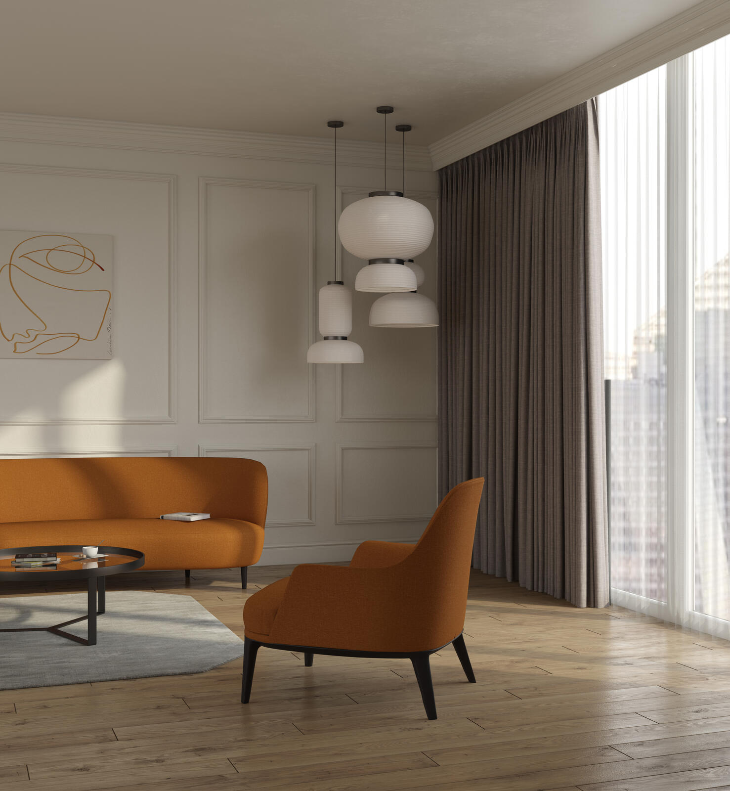 The satin embrace of your favourite armchair. A soft glow emanating from sheer curtains. The clean beauty of a timeless pattern. That special something that stands out from the rest: this is what drives us.